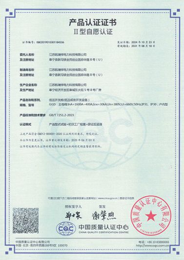 GGD1600A-400A-產(chǎn)品證書