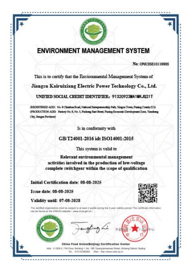 環(huán)境管理體系證書